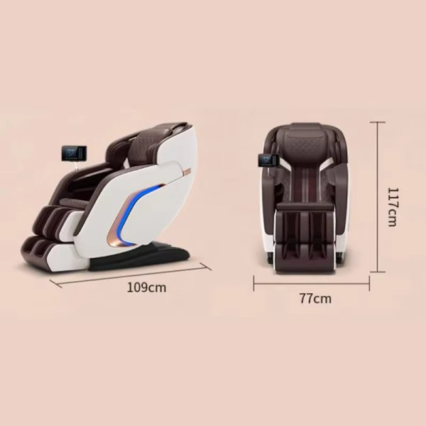 Esta silla de masaje inteligente ofrece una experiencia de relajación de cuerpo completo a través del movimiento avanzado de masaje robótico 3D y la tecnología de ferrocarril de guía de tipo SL. Diseñado tanto para salones comerciales como para espacios de bienestar personal, presenta tapicería de cuero sintético, calefacción de cintura y masaje dirigido para la espalda, el cuello, las piernas, los brazos, las caderas y los pies. Equipado con airbags de brazo en forma de U y masaje en el pie del rodillo, garantiza la comodidad a medida. Con 30 bolsas de aire, control de voz y control remoto con cable, la silla también incluye características inteligentes como altavoces Bluetooth incorporados y operaciones inteligentes. No se necesita instalación gracias a su diseño autónomo. Apoya el voltaje de 220 V y ofrece una garantía de 12 meses para la tranquilidad. Ya sea que esté equipando un spa de lujo o actualizando su esquina de bienestar en Santiago, Puente Alto, Antofagasta, Viña del Mar, Valparaíso, esta silla de masaje de alta gama proporciona el equilibrio ideal de tecnología, terapia y estilo elegante.